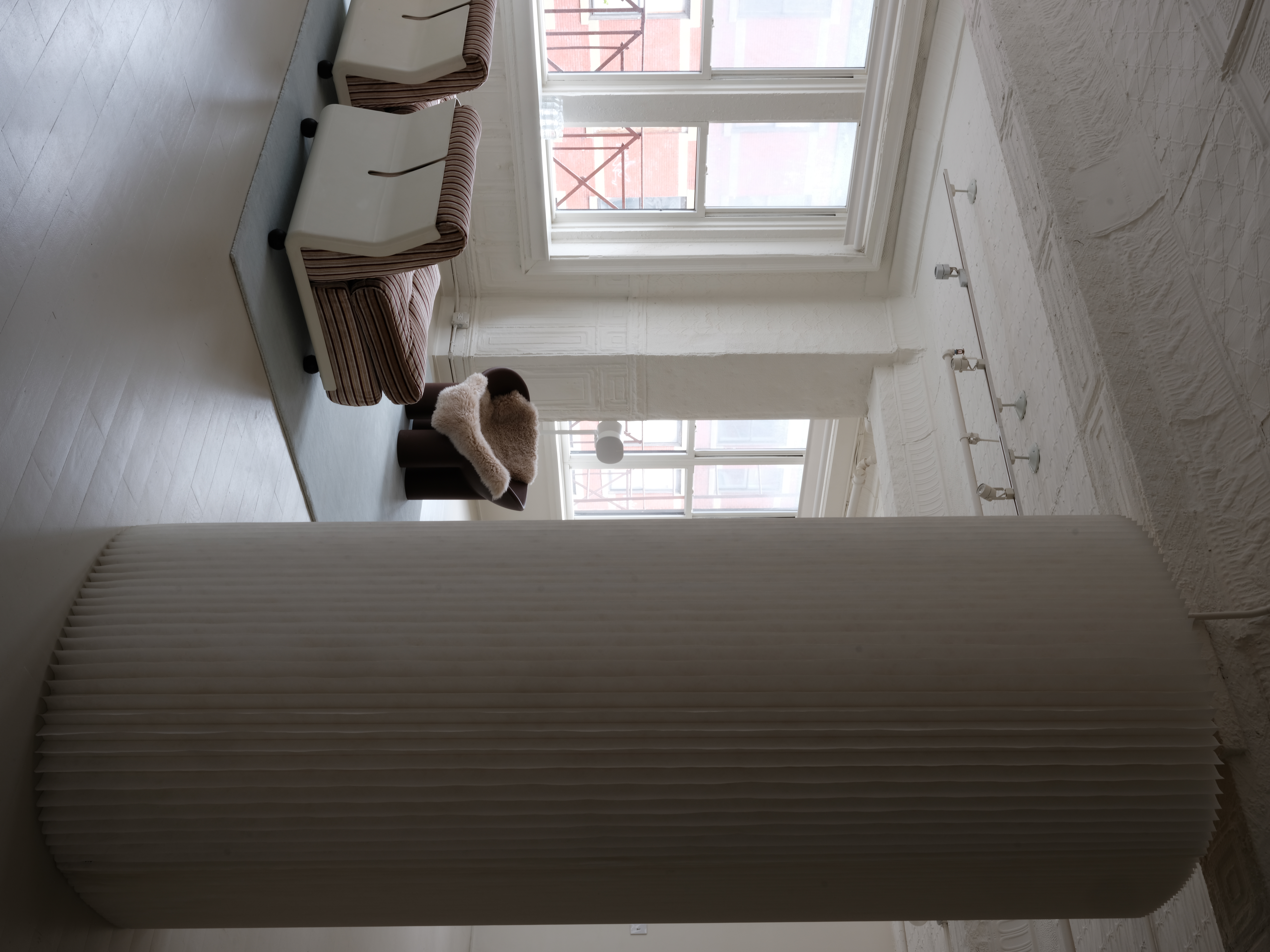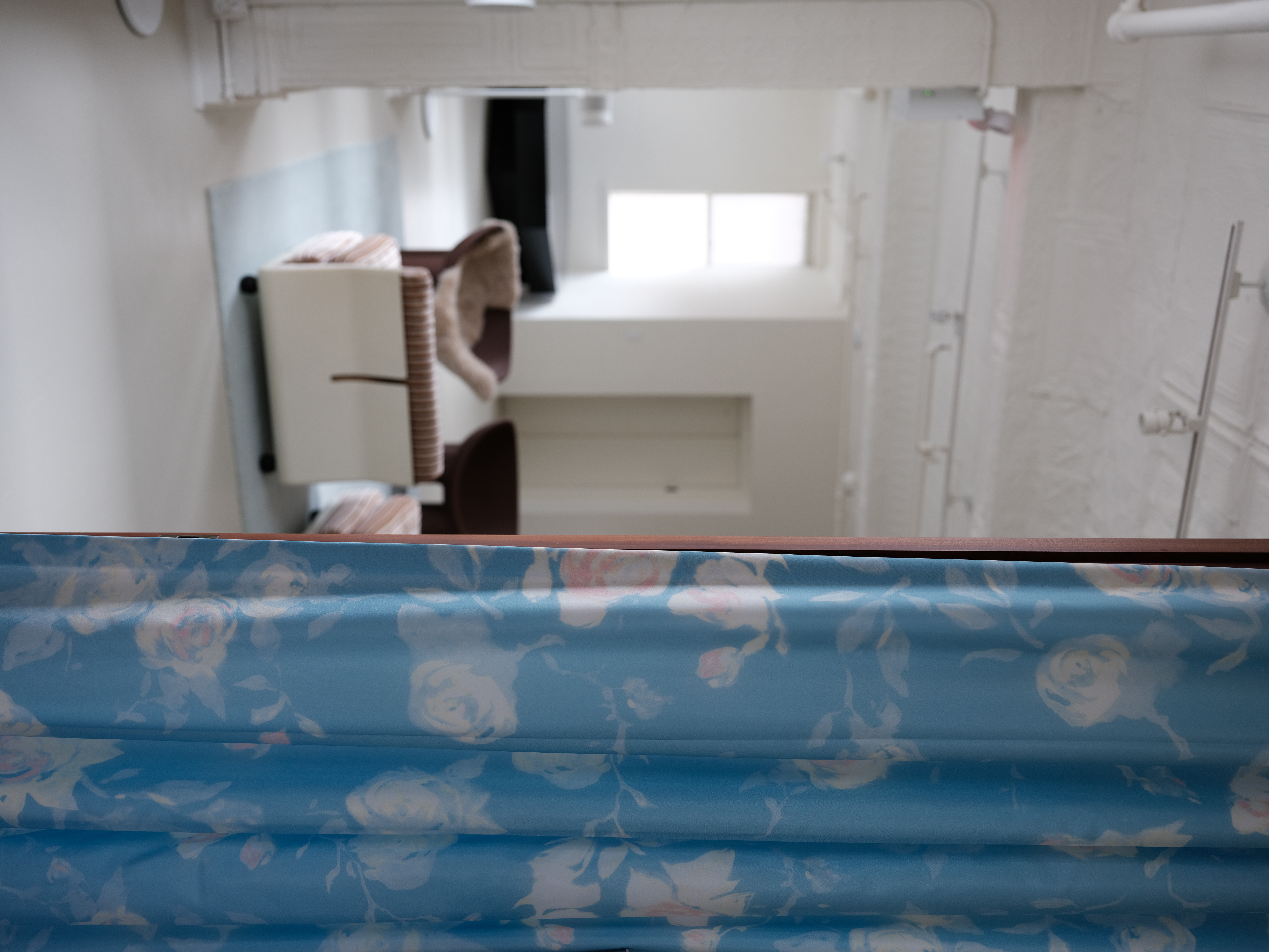 Material choices reinforce these conceptual and spatial intentions through restraint and clarity. Polycarbonate paneling lines the walls, filtering light and softening visual boundaries while maintaining a sense of privacy. A minimal epoxy-painted floor establishes continuity and durability, grounding the space with a quiet, utilitarian presence. Together, the materials create an atmosphere that is both calm and tactile, allowing form, light, and occupation to carry the primary architectural expression.